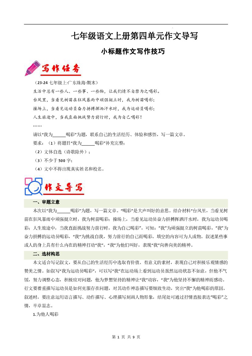 【作文】七年级上册语文专题16 单元作文导写(小标题作文写作技巧)-【同步作文课】