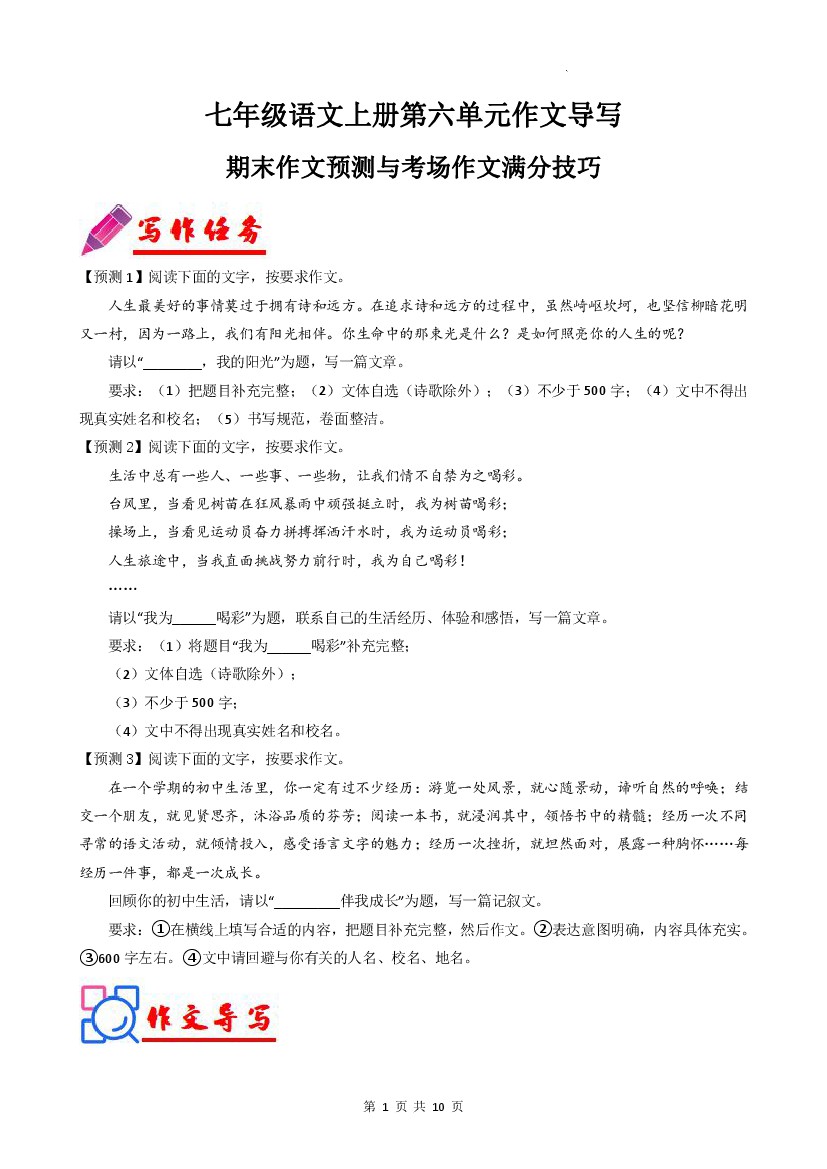 【作文】七年级上册语文专题24 单元作文导写(期末作文预测与考场作文满分技巧)-【同步作文课】