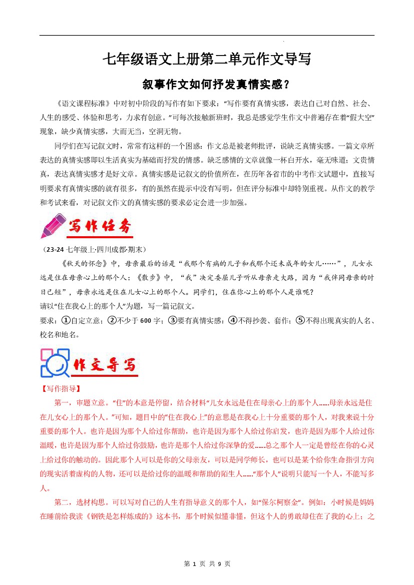 【作文】七年级上册语文专题08 单元作文导写(如何抒发真情实感?)