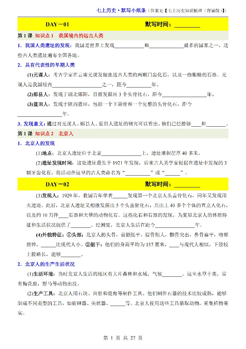 24秋新七上历史64天早背晚默