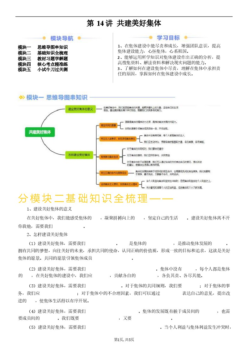 【七上道法】第14讲 共建美好集体-(原卷版+解析版)