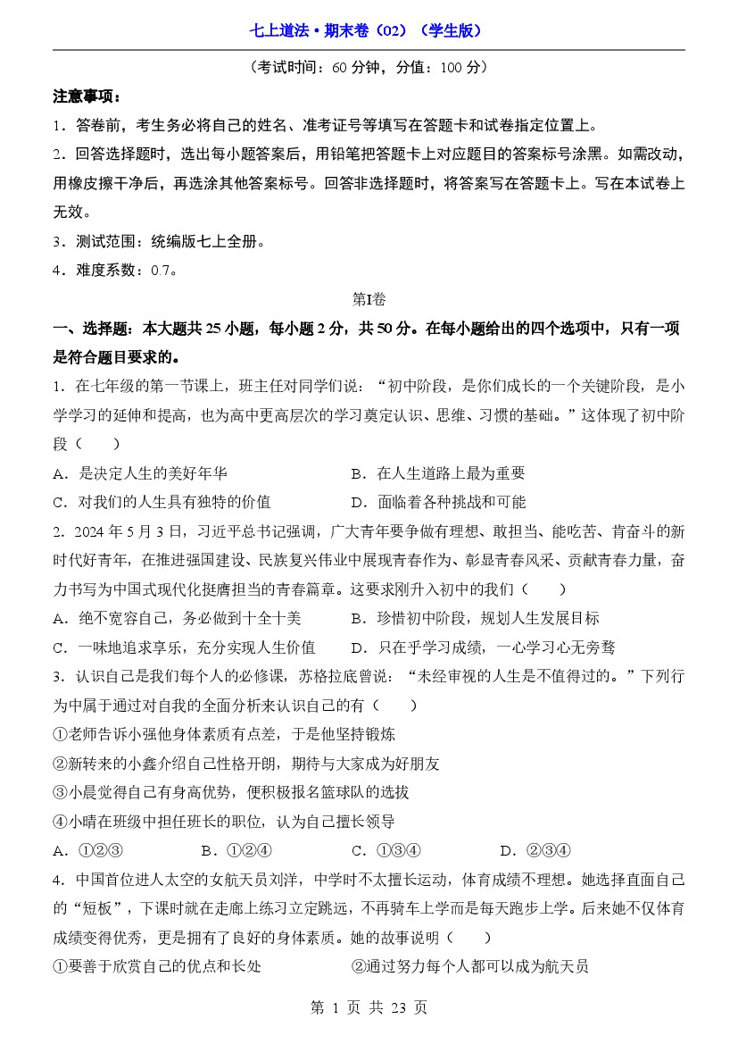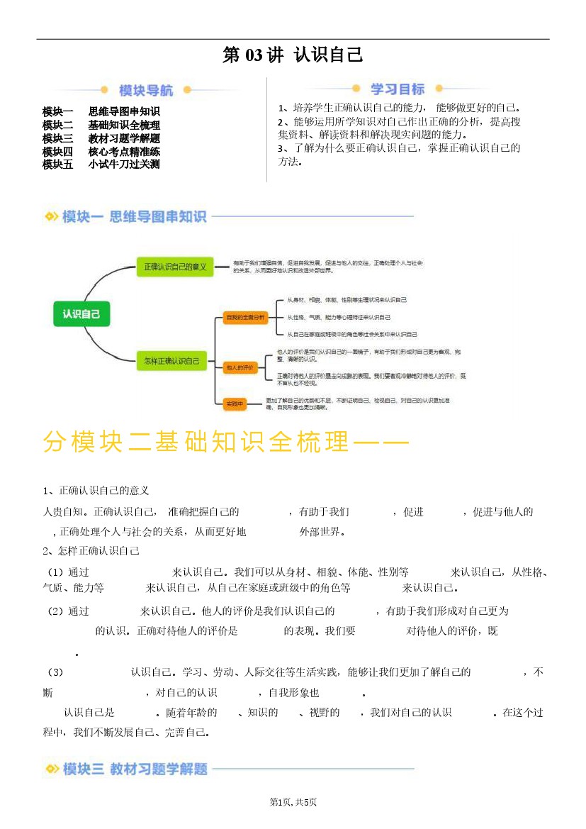 【七上道法】第03讲 认识自己-(原卷版+解析版)
