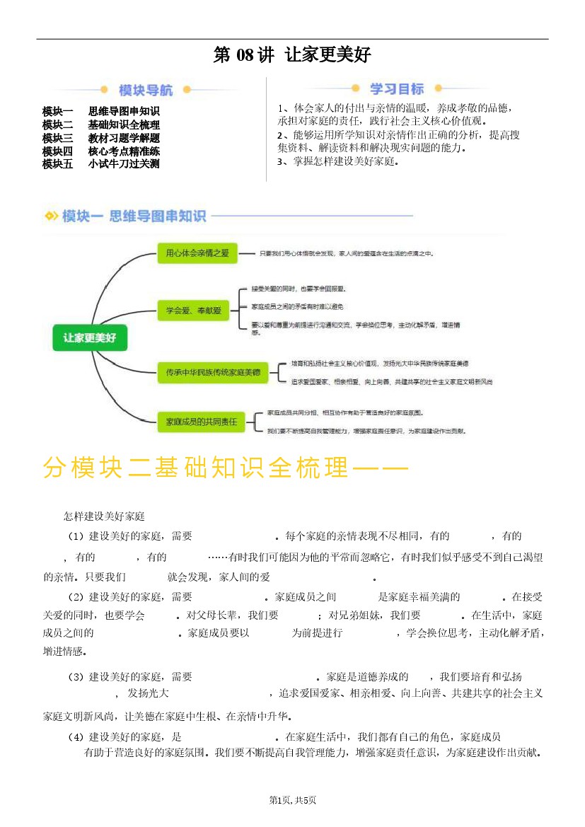 【七上道法】第08讲 让家更美好-(原卷版+解析版)
