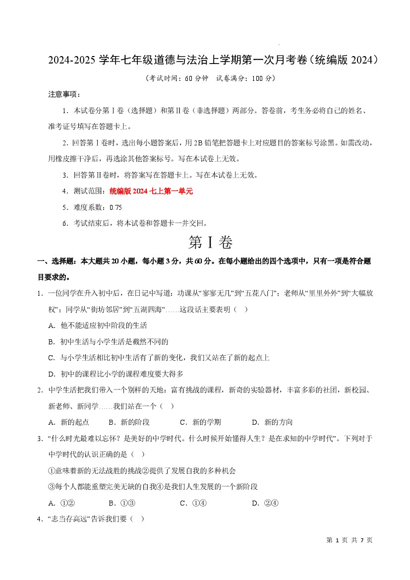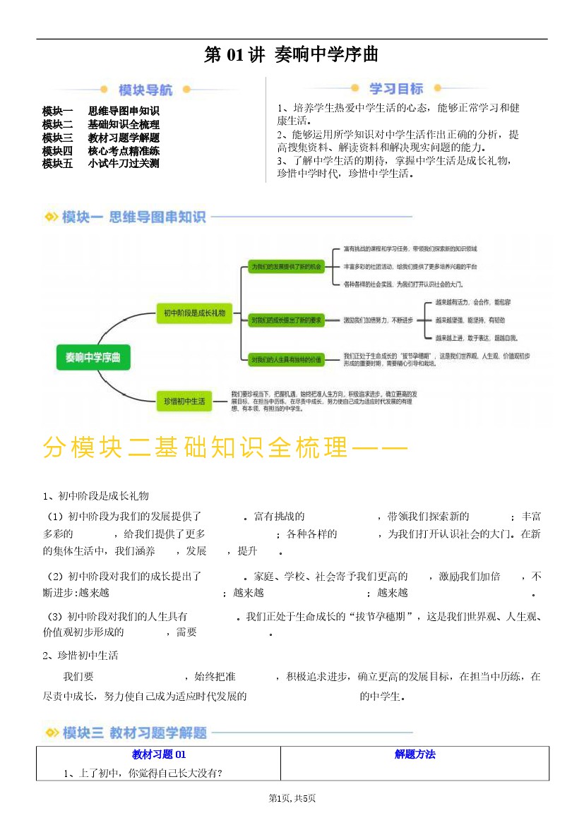 【七上道法】第01讲 奏响中学序曲-(原卷版+解析版)
