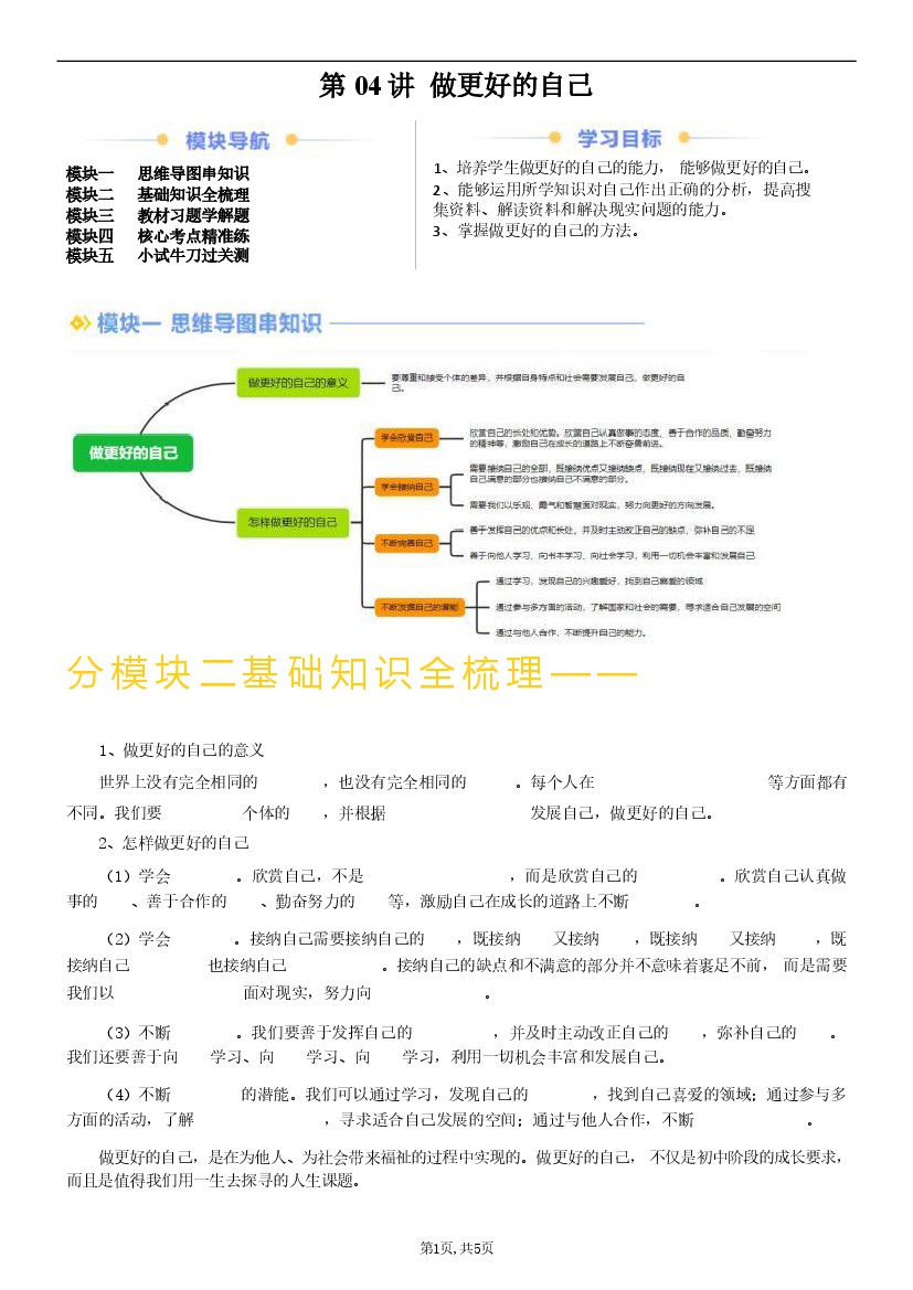 【七上道法】第04讲 做更好的自己-(原卷版+解析版)