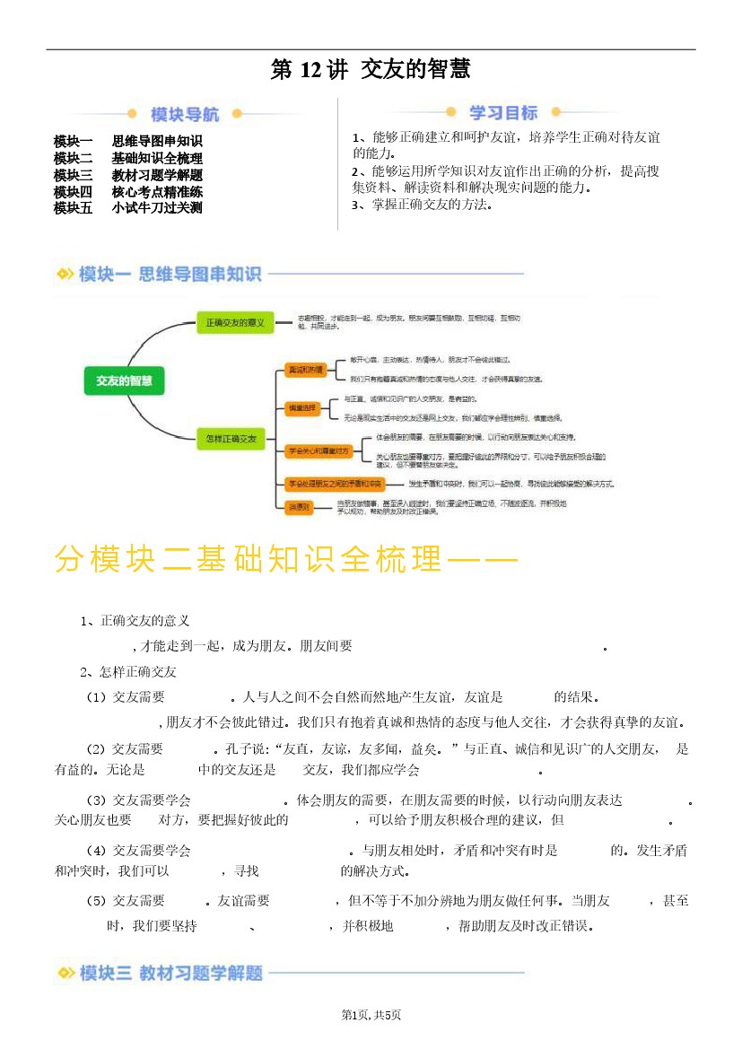 【七上道法】第12讲 交友的智慧-(原卷版+解析版)