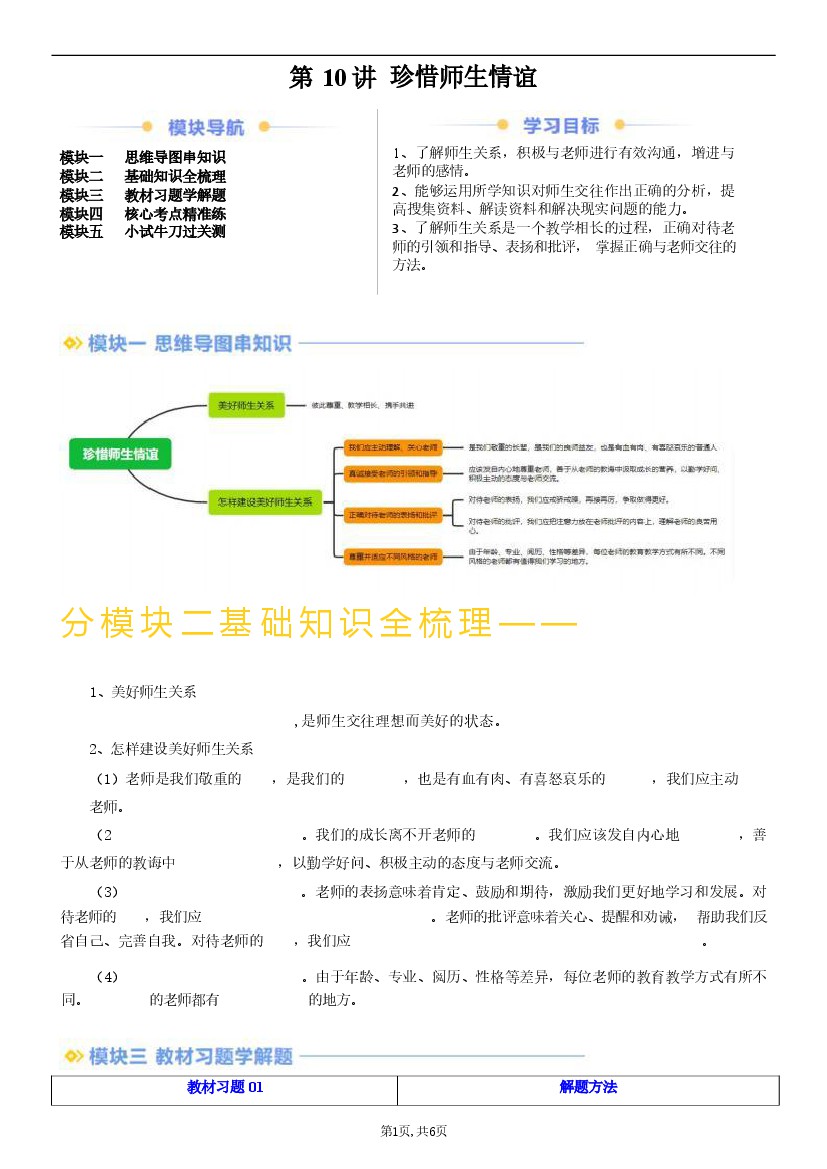 【七上道法】第10讲 珍惜师生情谊-(原卷版+解析版)