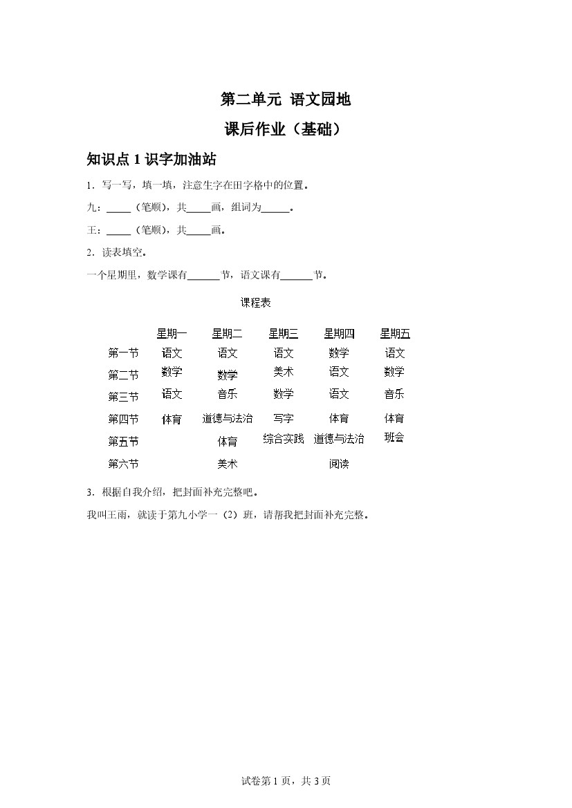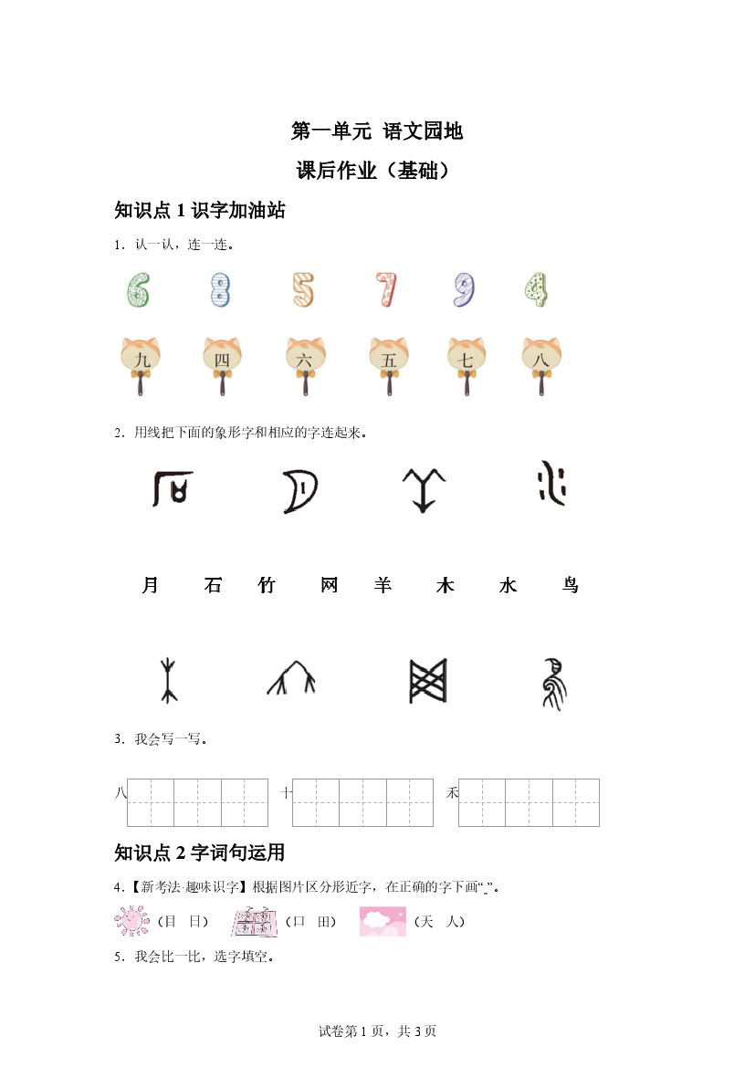 25新一年级上册语文第一单元 语文园地课后作业(基础)