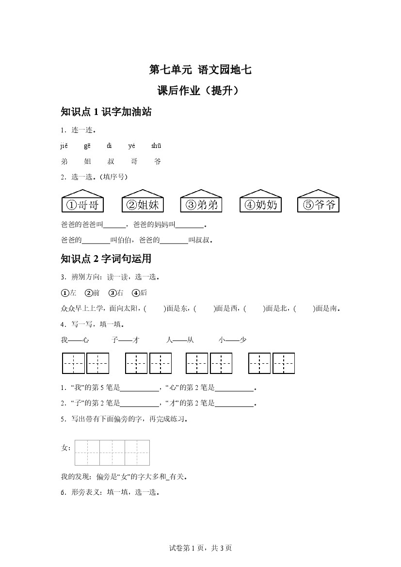25新一年级上册语文第三单元 语文园地课后作业(提升)