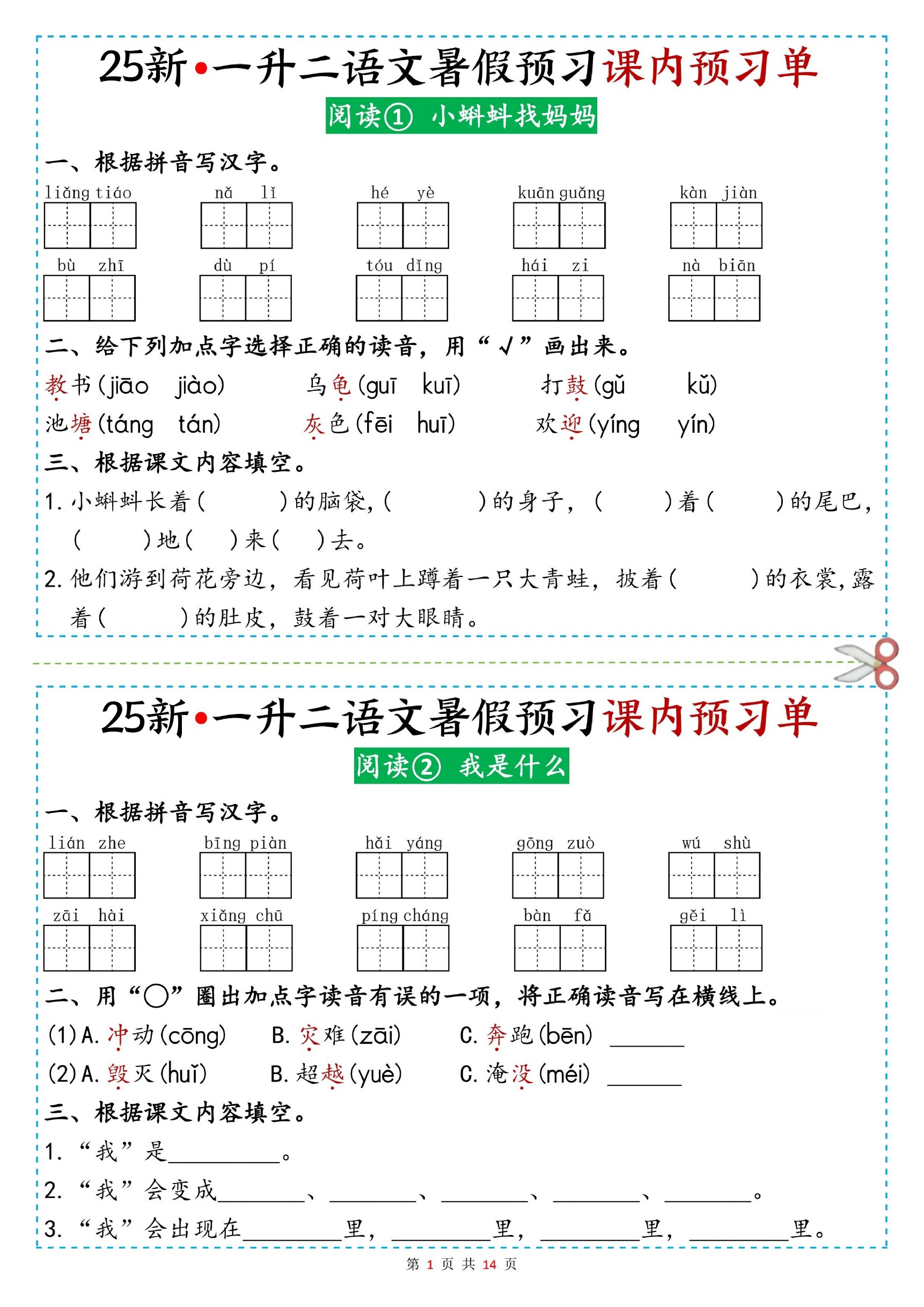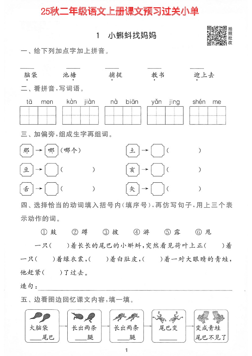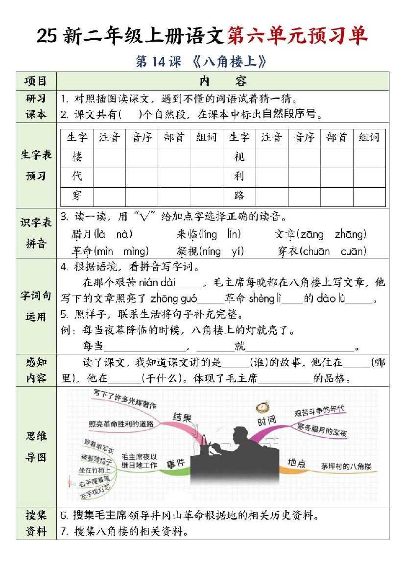 二年级语文人教版上册25秋《课本预习笔记》预习单 习题