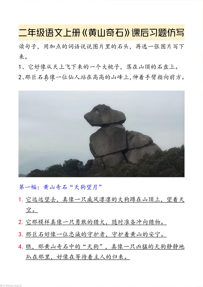 二年级语文上册《黄山奇石》课后习题仿写