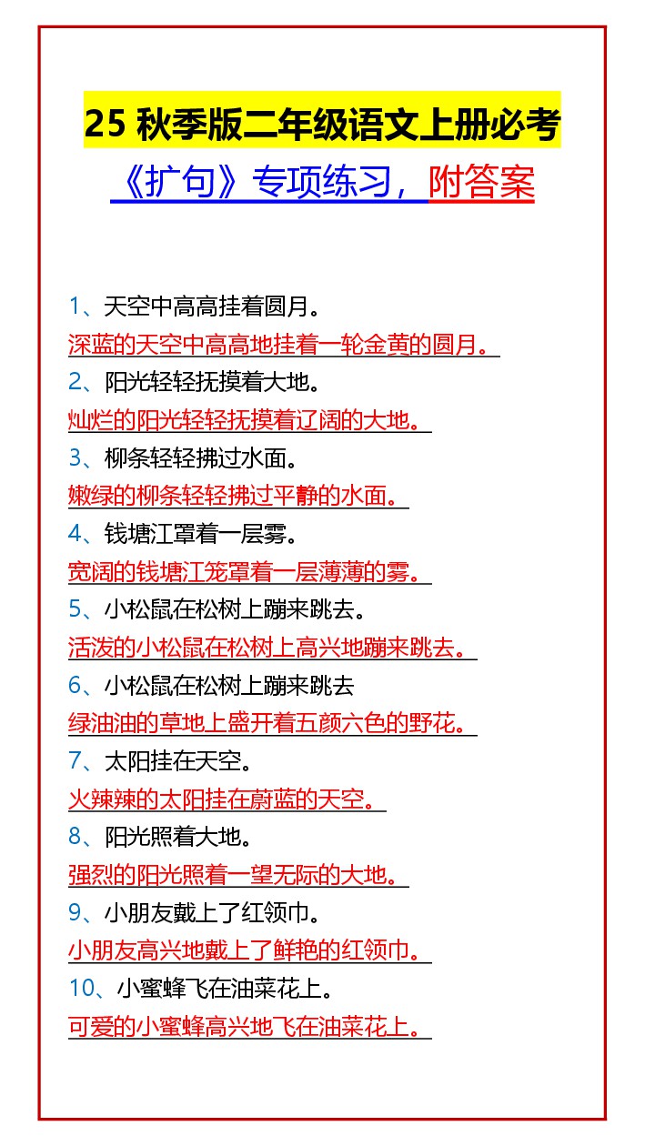 【2025秋新版】二年级语文上册必考 《扩句》专项练习,附答案