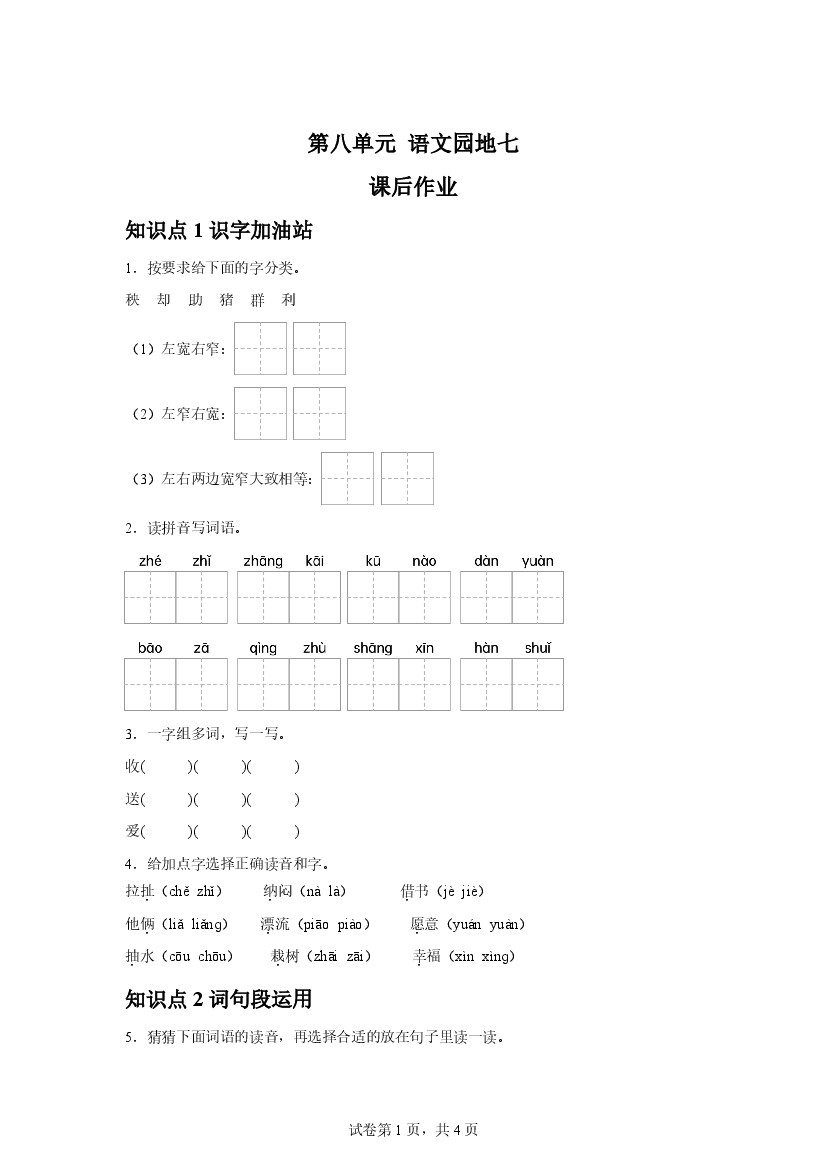 新二上语文1-8单元语文园地提升练习(含答案16页)订正版