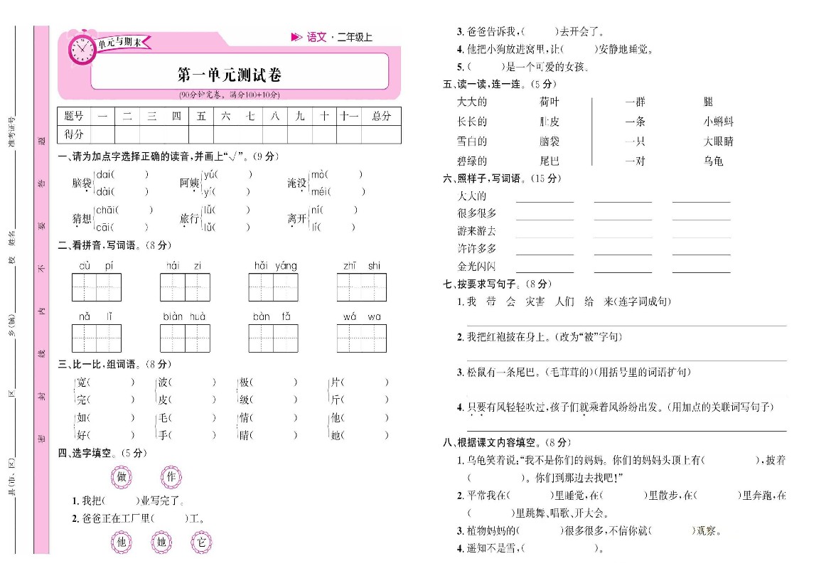 语文二年级上册1~8单元试卷