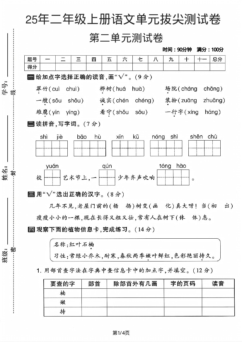 【25学年二上语文第二单元综合素养卷-红领巾(含答案5页)