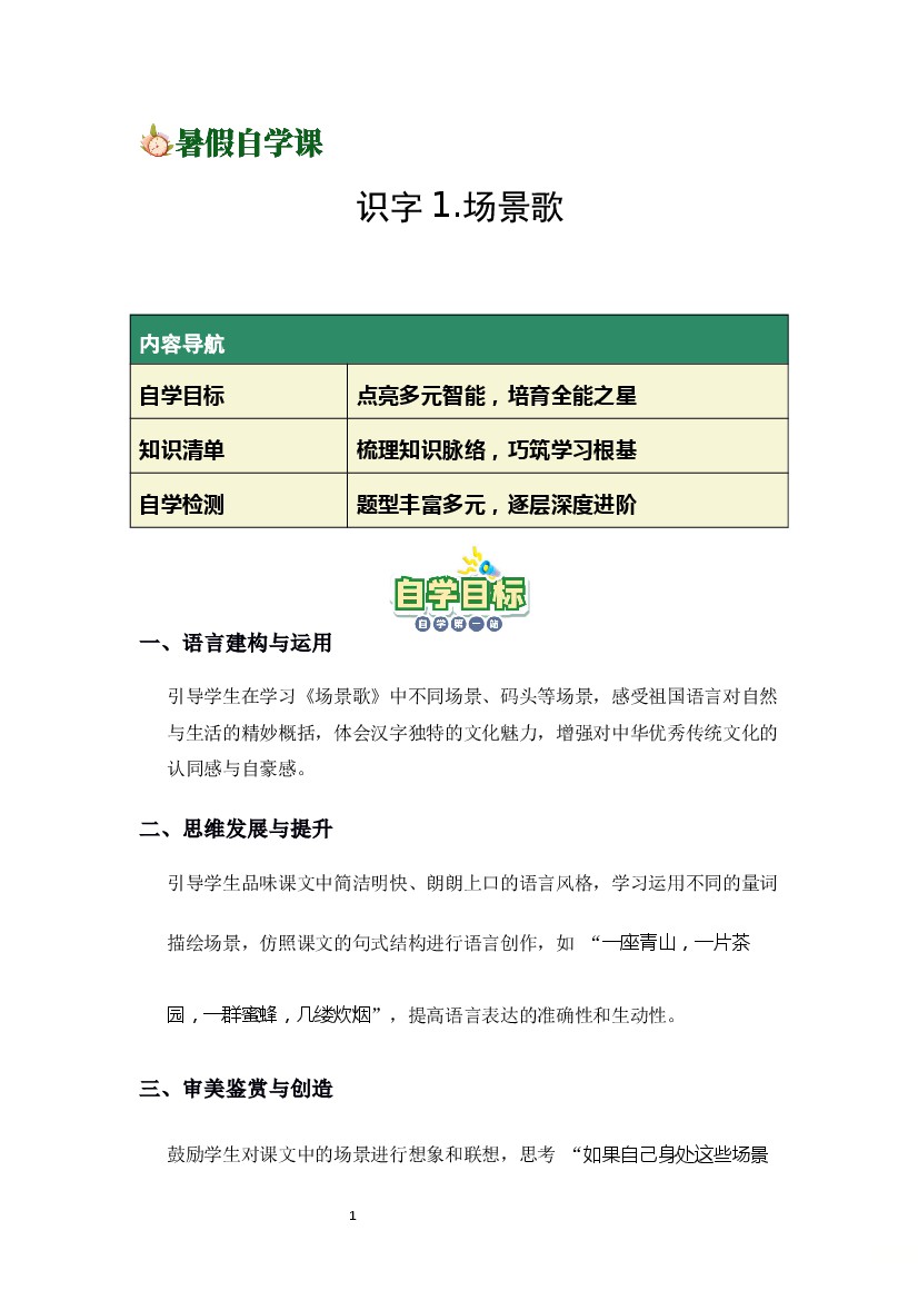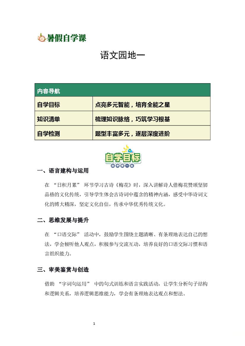 语文园地一-2025年新二年级语文暑假自学课(新教材)