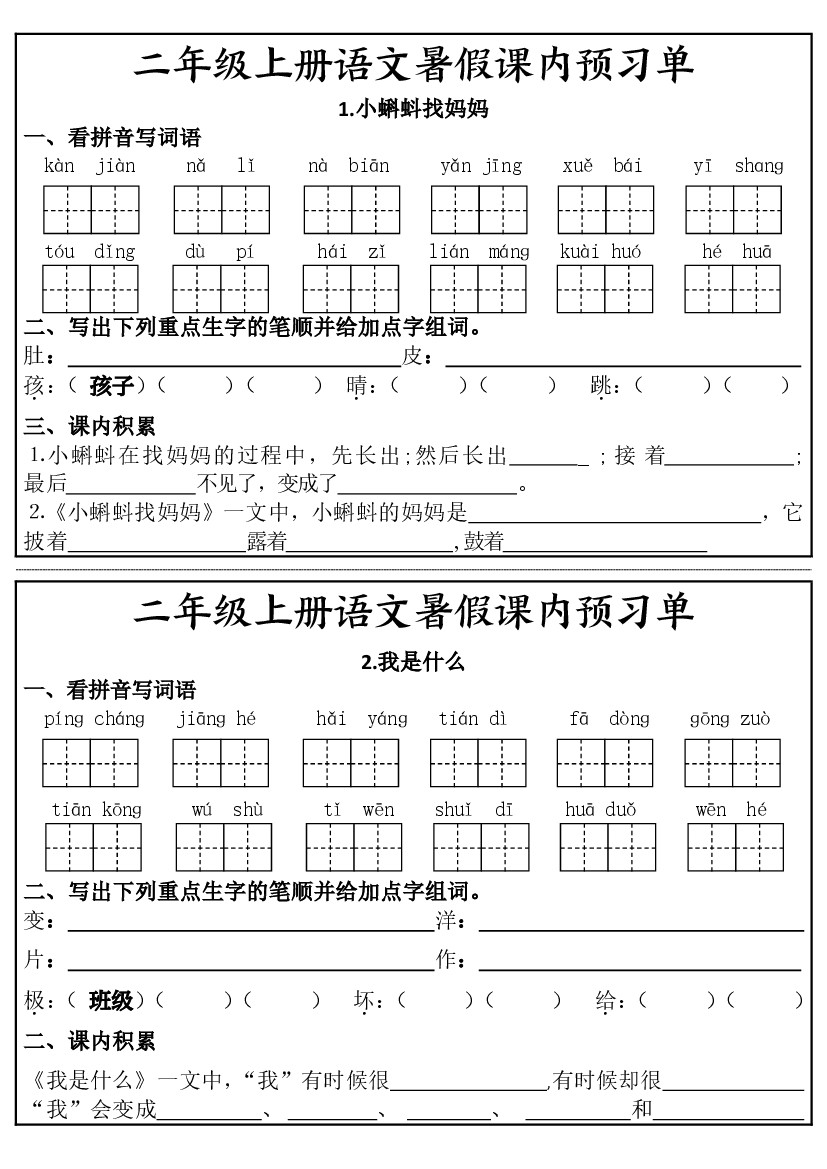 一升二语文暑假预习必背课文闯关表(启智星途)