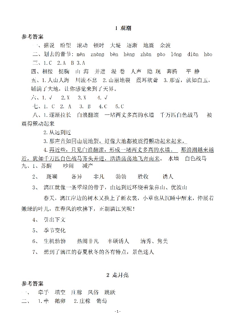 四年级上册语文课后练习题参考答案_