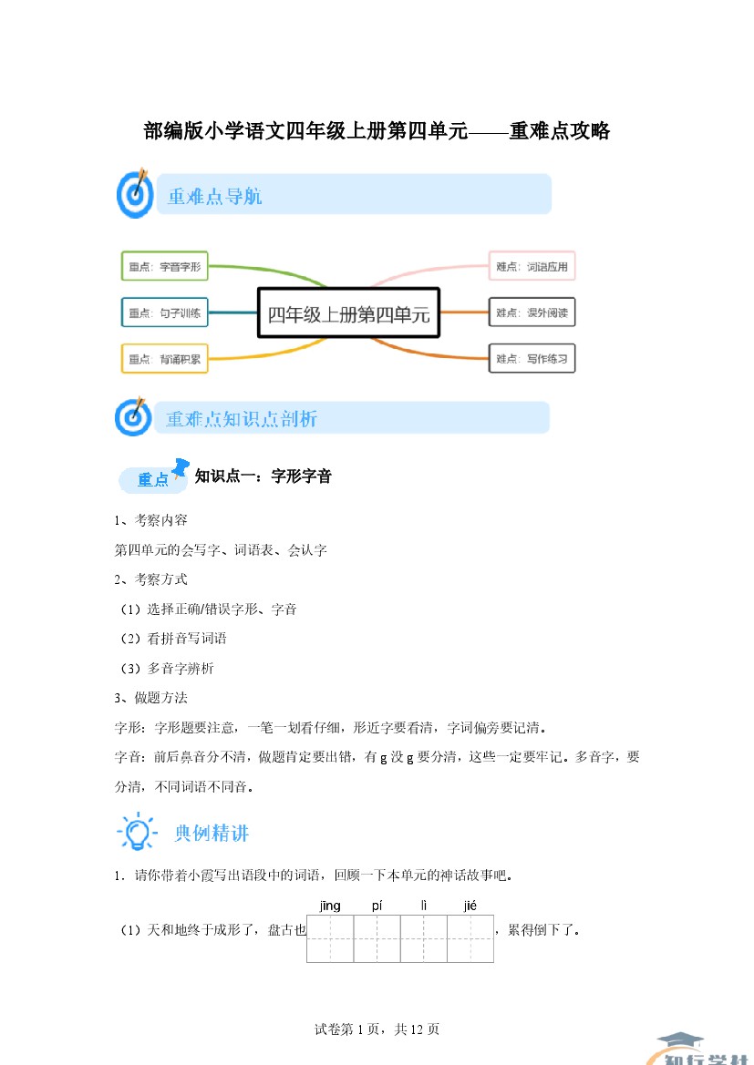 【语文】四年级上册第一单元重难点攻略