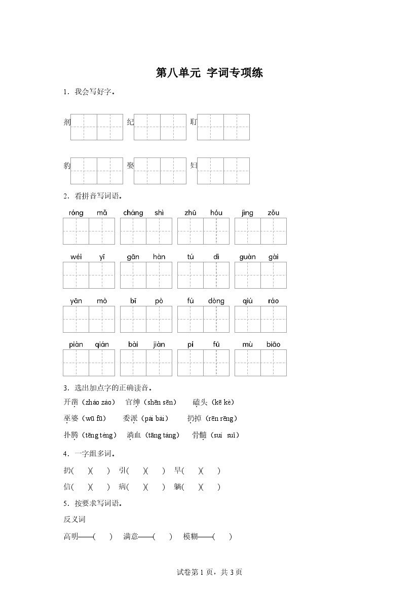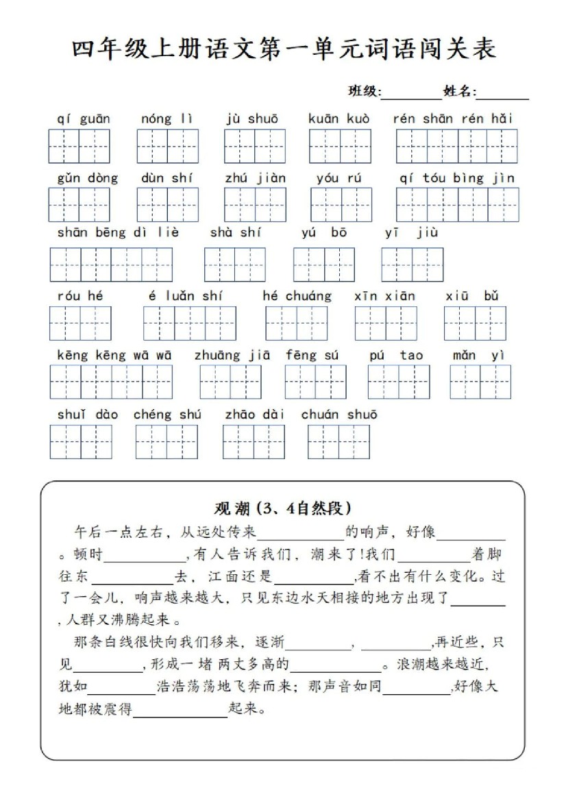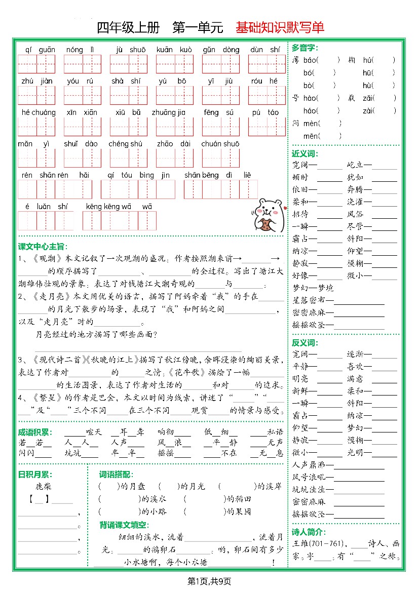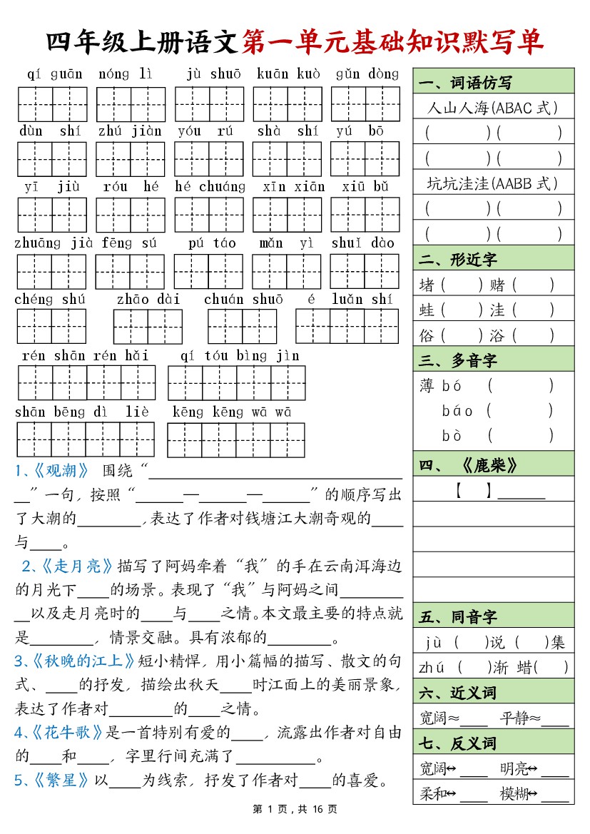 【地毯式复习】四年级上册语文1-8单元归类突破——词语