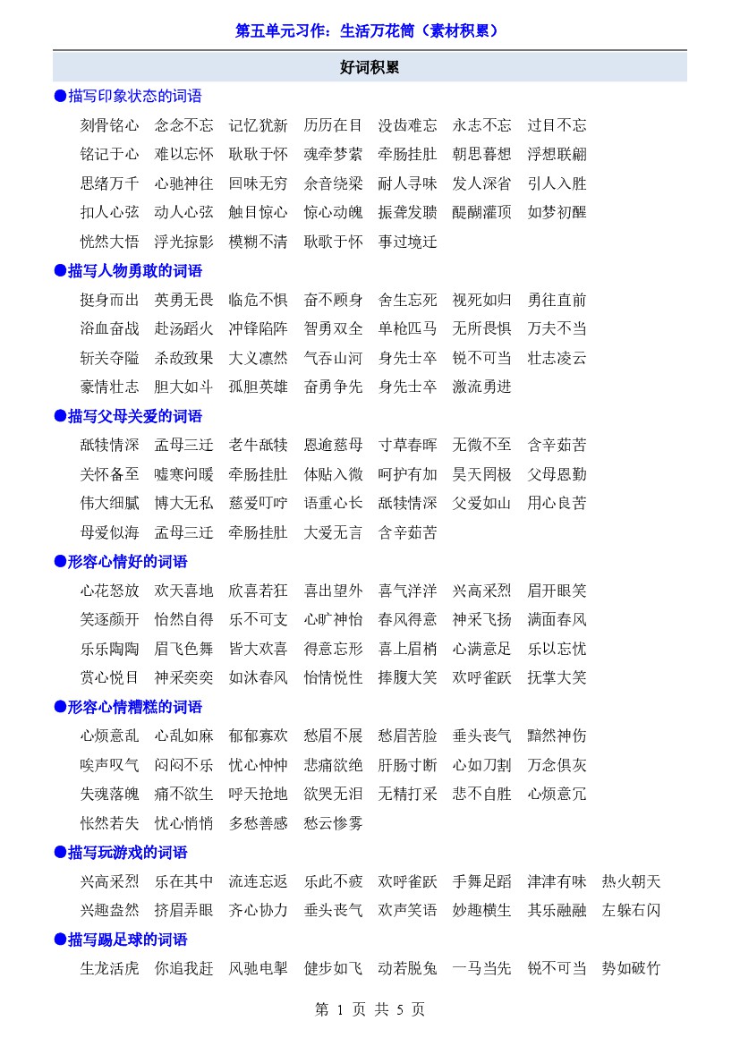25年秋【四上语文】第5单元习作《生活万花筒》(素材积累)
