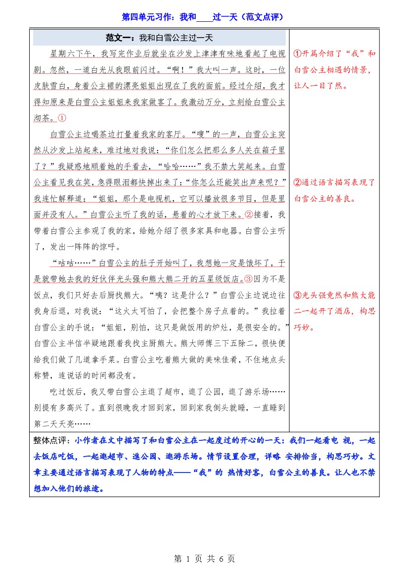 25年秋【四上语文】第4单元习作《我和_____过一天》(范文点评)