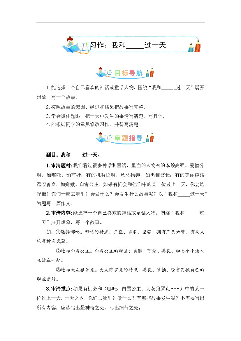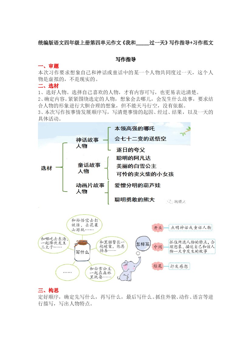 统编版语文四年级上册第四单元作文《我和_____过一天》写作指导+习作范文