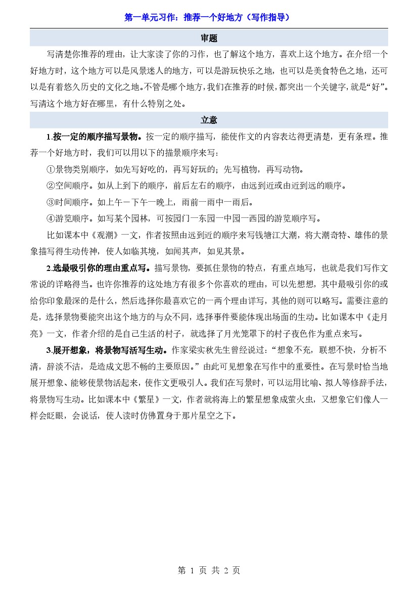 25年秋【四上语文】第1单元习作《推荐一个好地方》(写作指导)