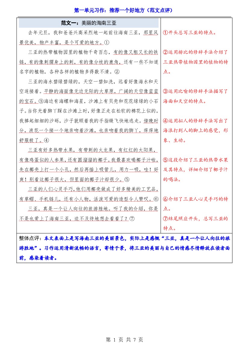 25年秋【四上语文】第1单元习作《推荐一个好地方》(范文点评)