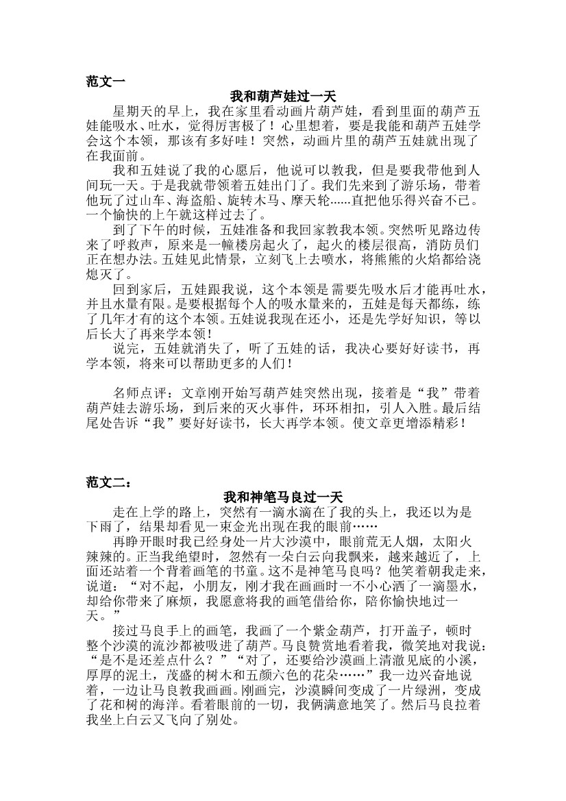 人教部编版四年级语文上册第4单元习作《我和________过一天 》名师指导和佳作点评(10篇)