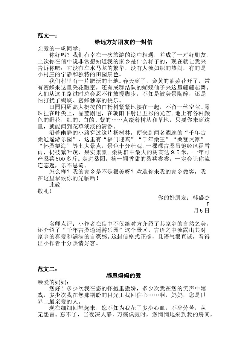 人教部编版四年级语文上册第7单元习作《写信》名师指导和佳作点评(10篇)