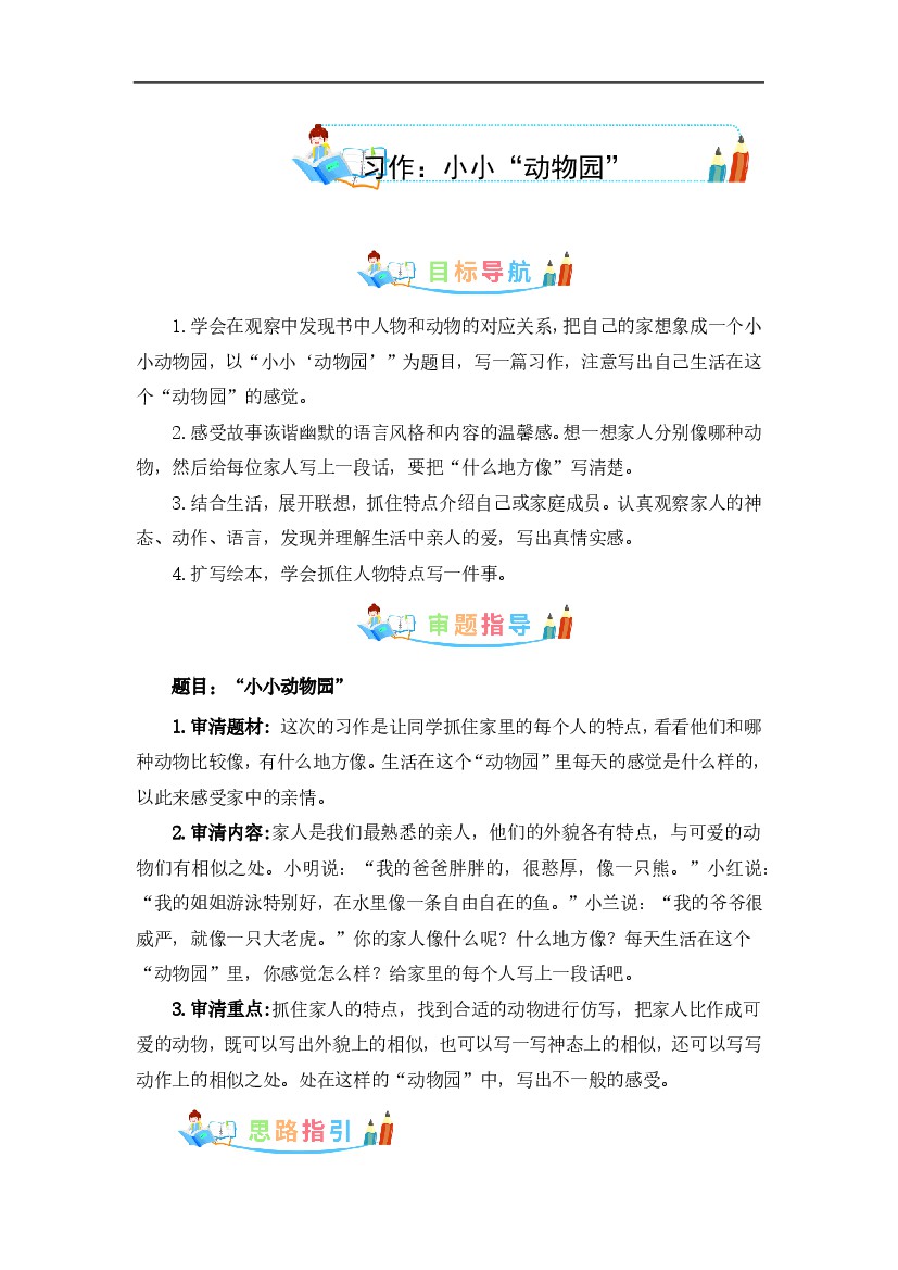 人教部编版四年级语文上册第2单元同步作文:小小“动物园”-写作指导+范文赏析+病文升格-部编版语文四年级上册