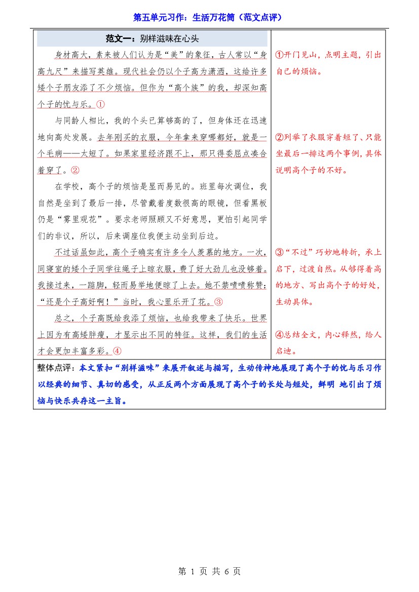 25年秋【四上语文】第5单元习作《生活万花筒》(范文点评)