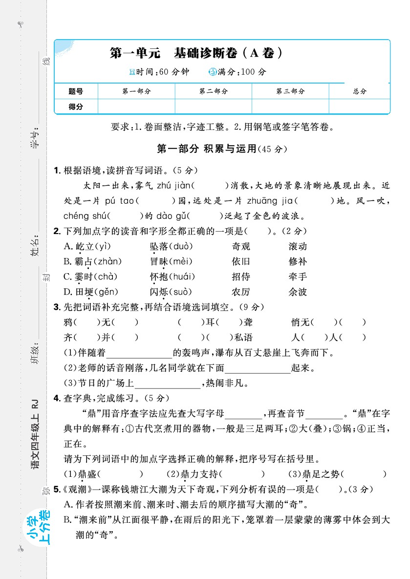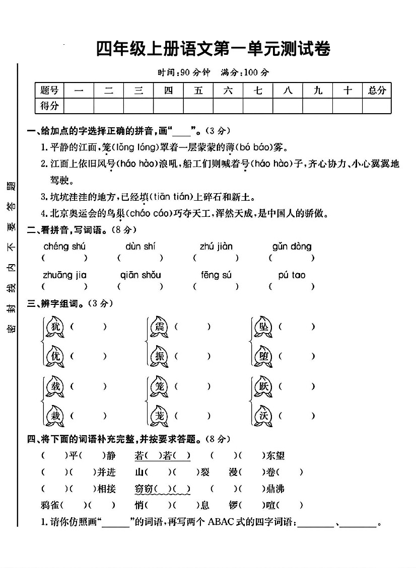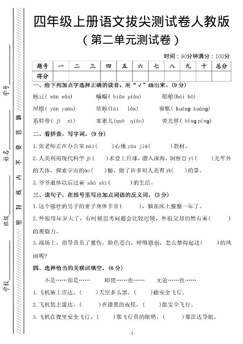 【25学年四上语文第二单元素养达标卷-船舶(含答案5页)
