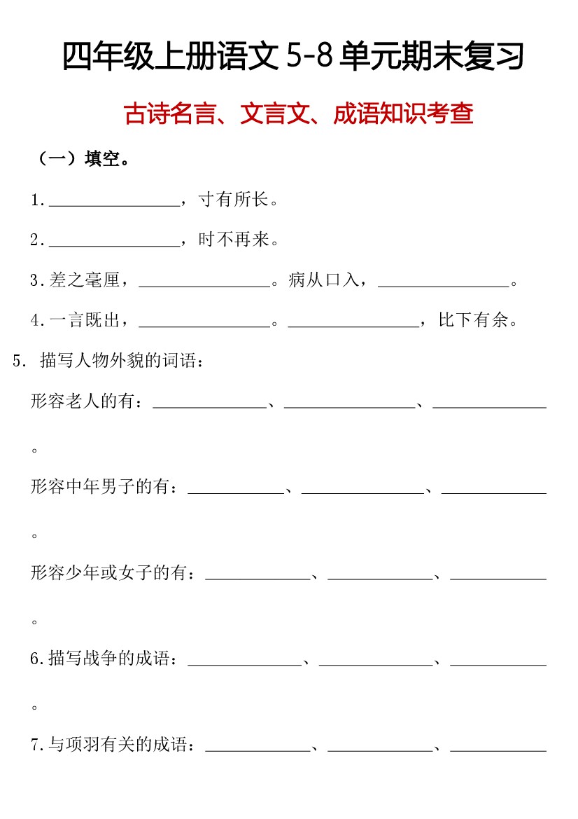 【5-8单元期末复习】四年级上册语文5-8单元期末复习