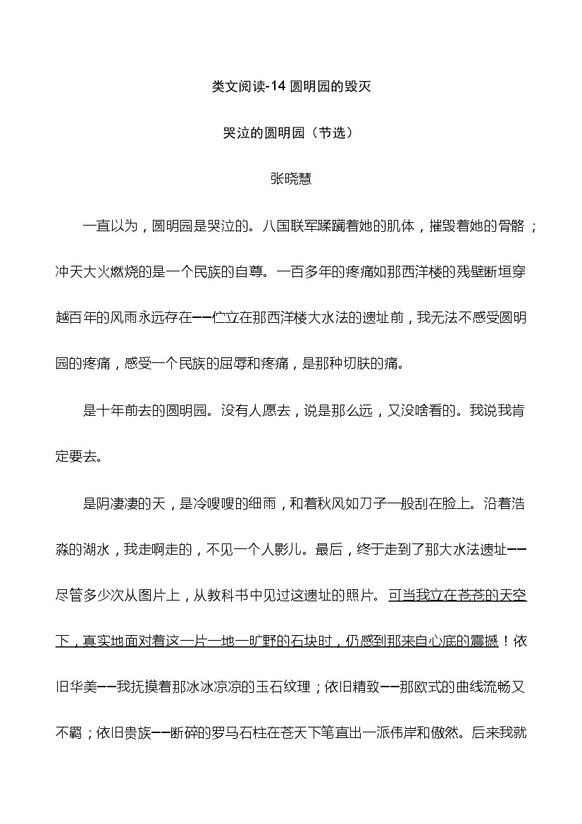 25年秋【五上语文】类文阅读1-14 圆明园的毁灭