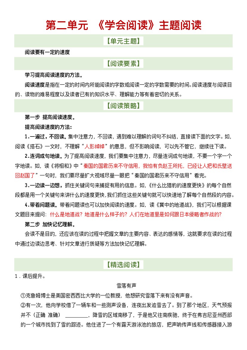 25年秋【五上语文】第2单元主题阅读(阅读策略+精选阅读