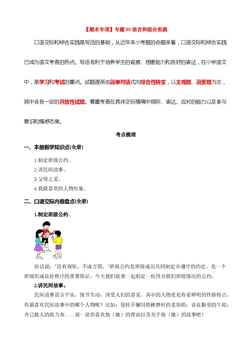五年级上册语文期末专题复习-(9)--专题09 语言和综合实践