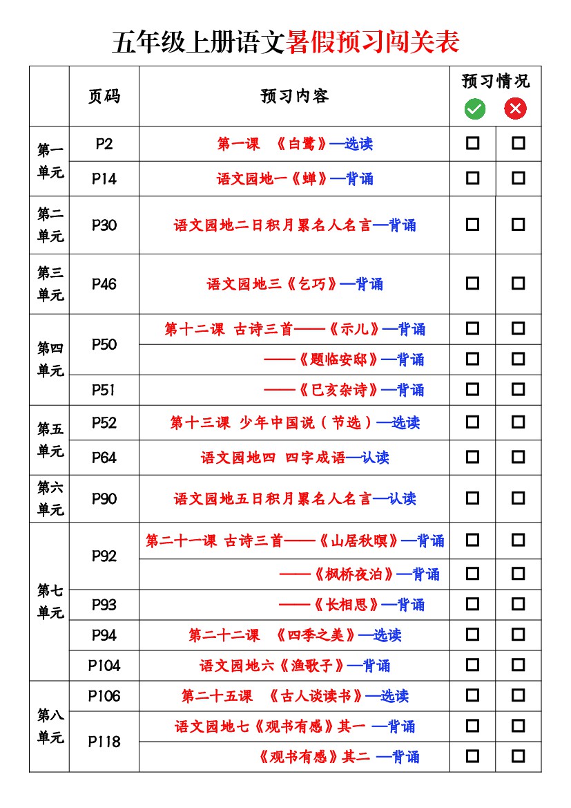 四升五暑假五上语文预习古诗词专项预习小纸条(含答案10页)