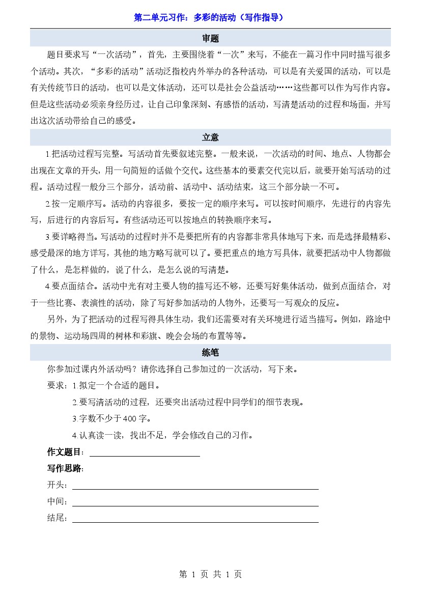 25年秋【六上语文】第2单元习作《多彩的活动》(写作指导)