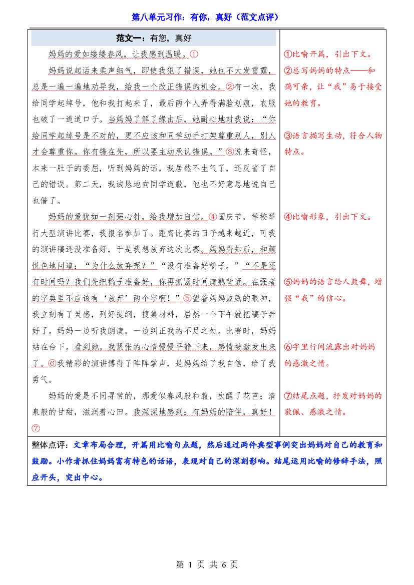 25年秋【六上语文】第8单元习作《有你,真好》(范文点评)