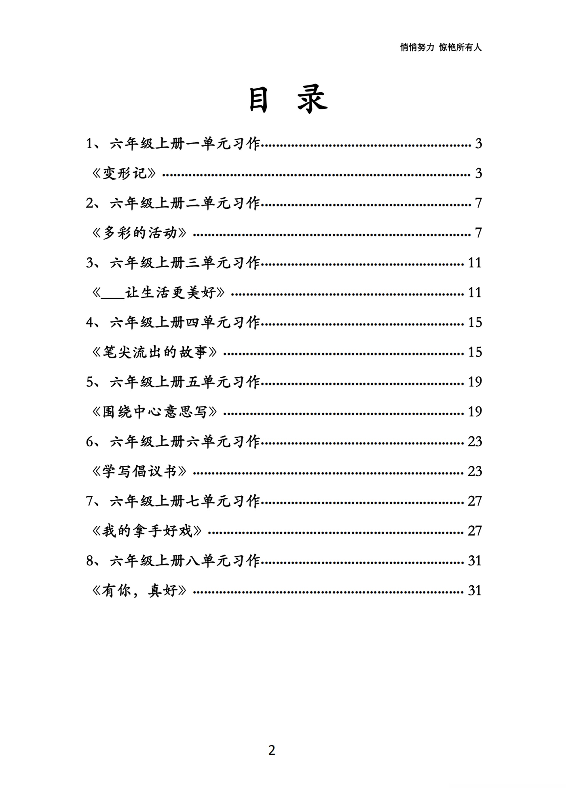 人教部编版六年级语文上册第1单元同步作文:变形记-写作指导+范文赏析+病文升格-部编版语文六年级上册