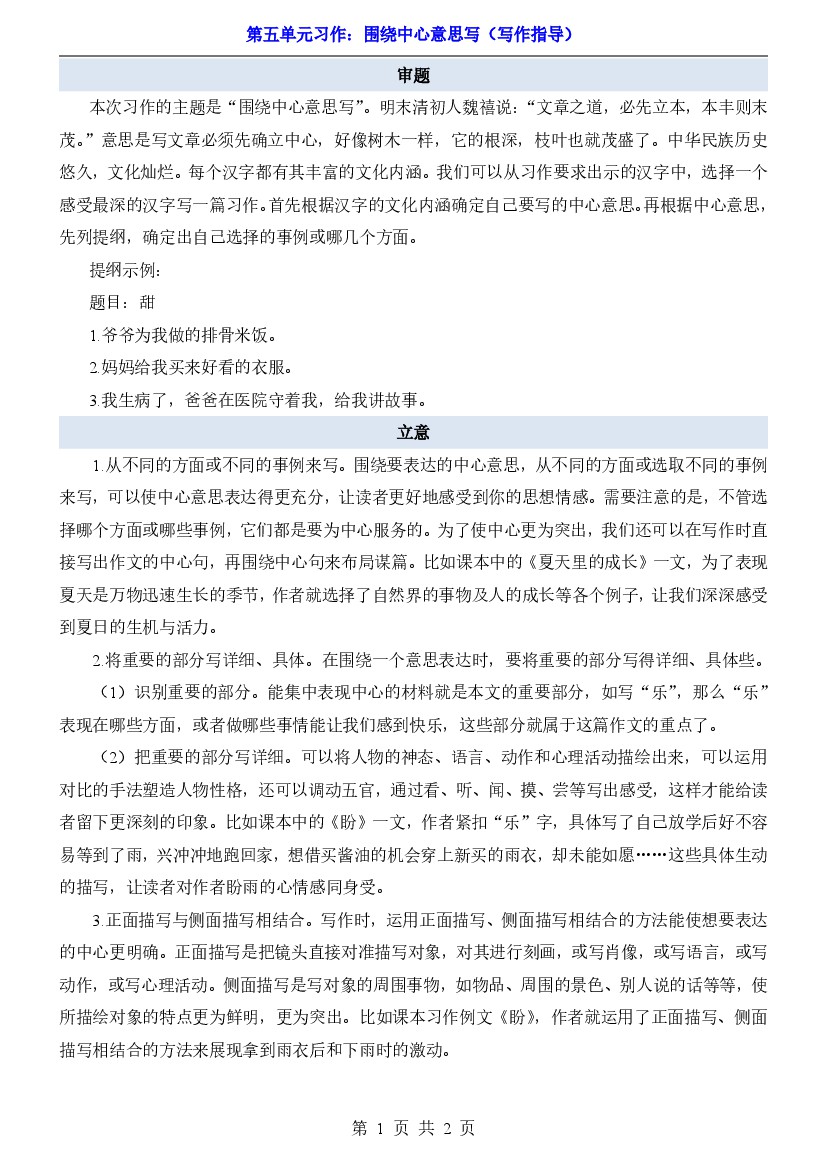 25年秋【六上语文】第5单元习作《围绕中心意思写》(写作指导)