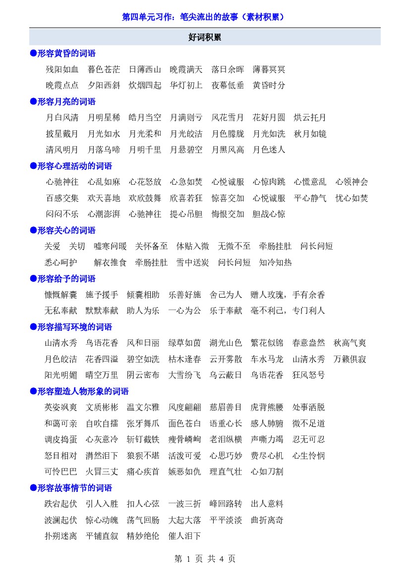 25年秋【六上语文】第4单元习作《笔尖流出的故事》(素材积累)