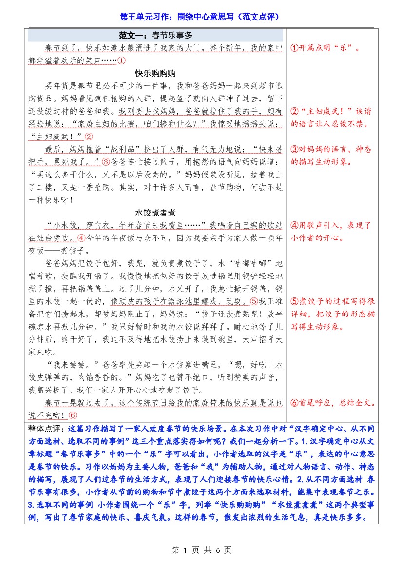 25年秋【六上语文】第5单元习作《围绕中心意思写》(范文点评)