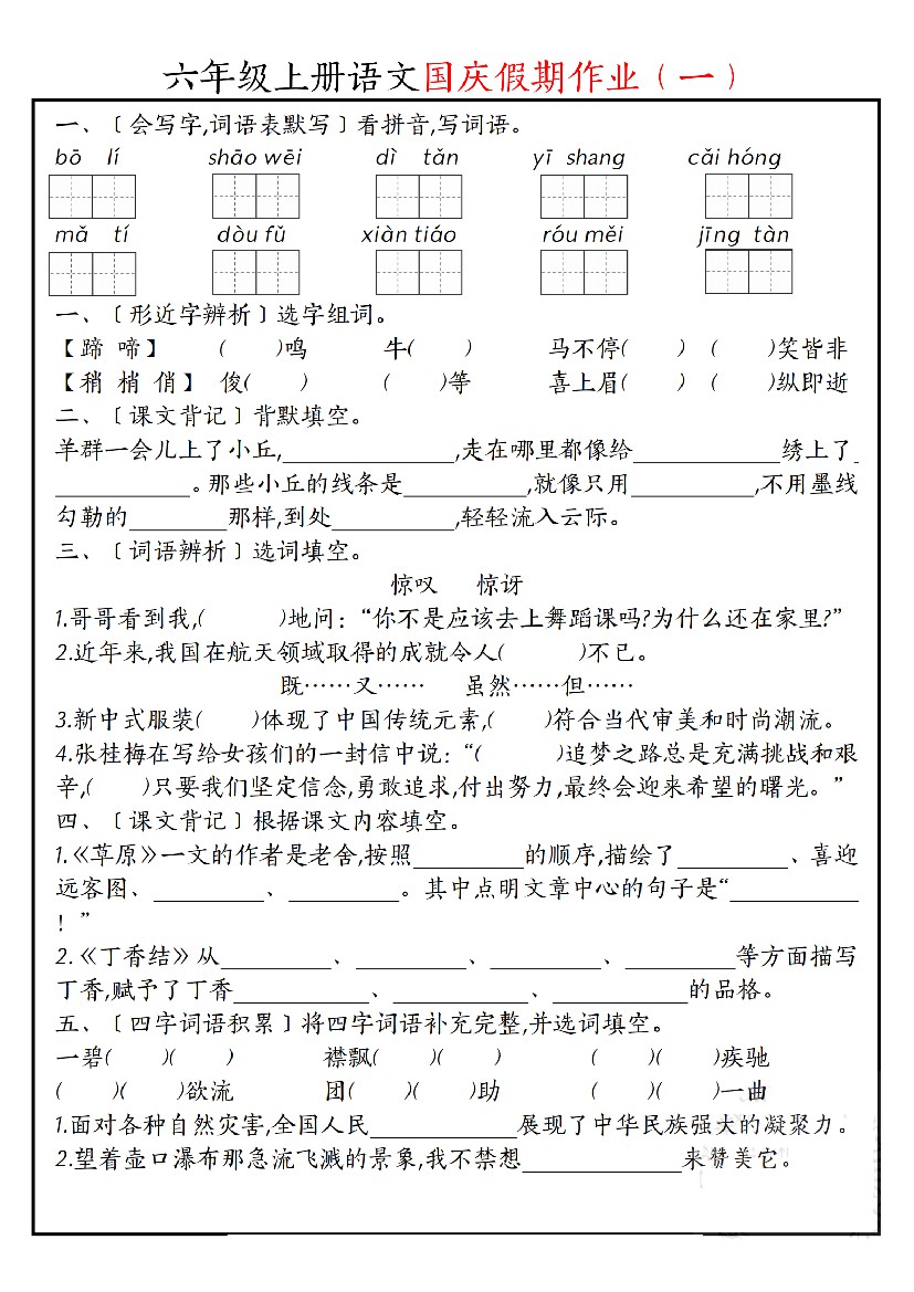 六上《语文园地》核心考点通关摸查检测(含答案24页)