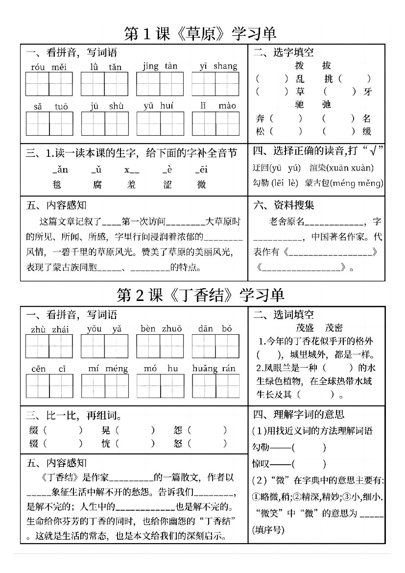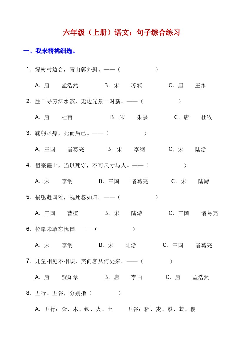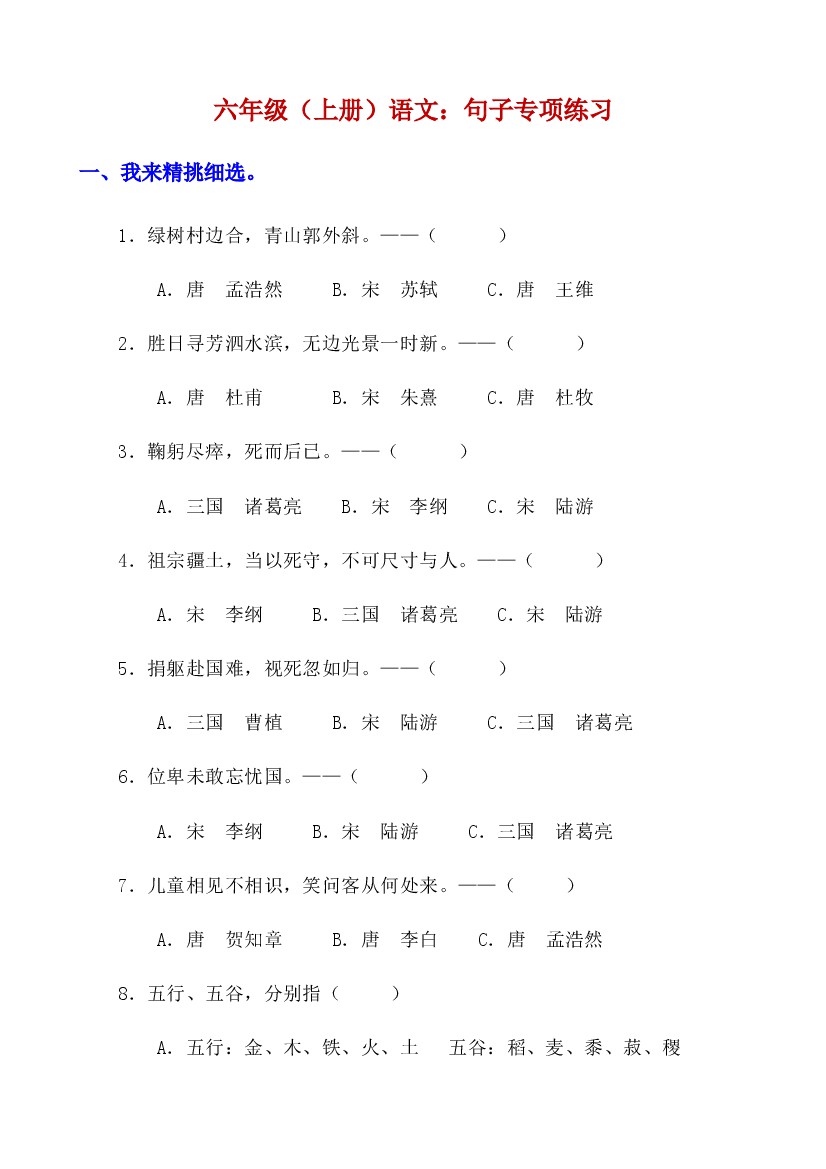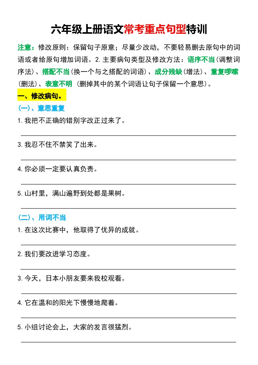 -六年级(上)语文1-8单元课内好句仿写汇总