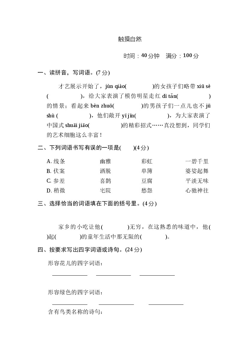 《语文期末必考按课文内容填空专题》6年级上册语文
