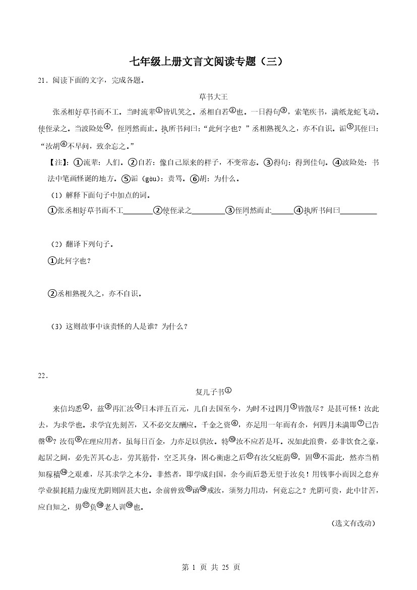 七年级(上)语文第三单元 阅读综合实践 分层练习