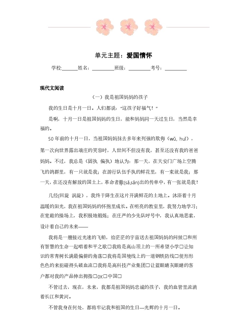 首页 > 全部 > 阅读理解 > 五年级(上)语文 第四单元主题同步阅读拓展训练